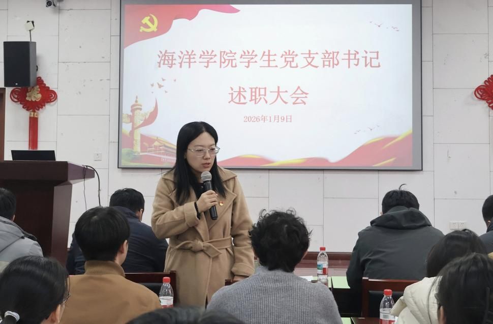 张乐书记认真听取述职后,对各学生党支部书记过去一年的辛勤付出和取得的成绩表示肯定。她指出,过去一年各学生党支部在学院党委领导下,紧紧围绕立德树人根本任务和学院发展大局,工作扎实、成效明显,主要体现在四个方面:一是政治引领作用持续强化。各支部坚持把政治建设摆在首位,通过“三会一课”、主题党日、理论学习小组等多种形式,组织党员深入学习党的创新理论,特别是关于教育、科技、人才以及海洋强国建设的重要论述,不断引导党员同学增强“四个意识”、坚定“四个自信”、做到“两个维护”。二是支部规范化建设稳步提升。各支部能严格按照党章和党支部工作条例要求,规范执行组织生活制度,党员发展、教育、管理、监督等基础工作更加扎实,党费收缴使用、工作记录等日益规范,为支部战斗堡垒作用发挥奠定了良好基础。三是党建与业务融合初见成效。各支部积极推动党建工作与专业学习、科研创新、社会实践、志愿服务相结合,围绕海洋学科特色开展主题研学,组织党员投身科创竞赛、志愿服务,在学风建设、寝室文明中发挥模范带头作用,使党建工作更接地气、更有活力。四是党员先锋模范作用有效发挥。广大学生党员在学习科研、文体活动、公益服务及应急处突中冲锋在前、勇挑重担,涌现出见义勇为等先进事迹,展现了新时代学生党员的良好风貌,带动了学院积极向上的整体氛围。