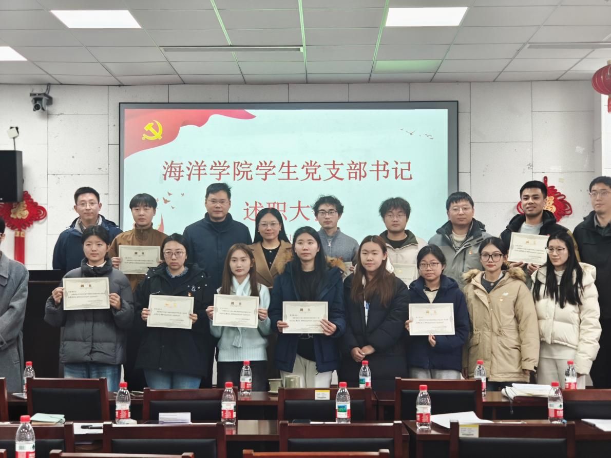 针对未来工作,张乐书记提出五点希望和要求:第一,要始终把政治建设摆在首位,在深化理论武装上走在前列。支部书记要带头深入学习党的创新理论,结合海洋学科背景深刻理解国家战略,引导党员将个人追求融入党和国家事业大局。第二,要着力夯实组织基础,在提升支部建设质量上下足功夫。要严格落实组织生活制度,推进支部标准化规范化建设,探索符合学生特点、富有专业特色的活动形式,增强组织生活的感染力。第三,要紧密围绕中心服务大局,在推动党建与业务深度融合上务求实效。要找准党建工作与学业、科研、实践、就业、校园文化等的结合点,搭建平台、设计载体,引导党员在服务海洋强国建设和学院发展中贡献力量。第四,要充分发挥党员先锋模范作用,在联系服务师生中展现担当。要建立健全党员联系服务同学机制,鼓励党员在学习、科研、服务中作表率,加强典型选树宣传,营造学习先进、争当先进的氛围。第五,要不断加强自身能力建设,在履职尽责中锤炼过硬本领。支部书记要主动学习党务知识,提升组织协调、群众工作等能力,勇于创新担当。学院党委也将持续加强培训指导与支持。